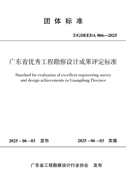 为规范广东省优秀工程勘察设计成果评定工作,现批准《广东省优秀工程勘察设计成果评定标准》(编号为T/GDEEDA 006-2025)为广东省工程勘察设计行业协会团体标准,自2025年6月3日起施行。