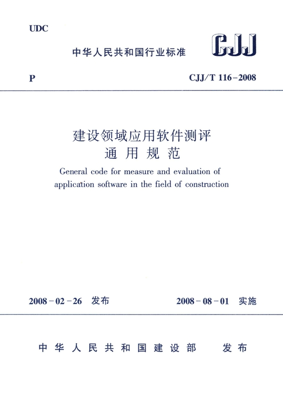 现批准《建设领域应用软件测评通用规范》为行业标准,编号为CJJ/T 116-2008,自2008年8月1日起实施。