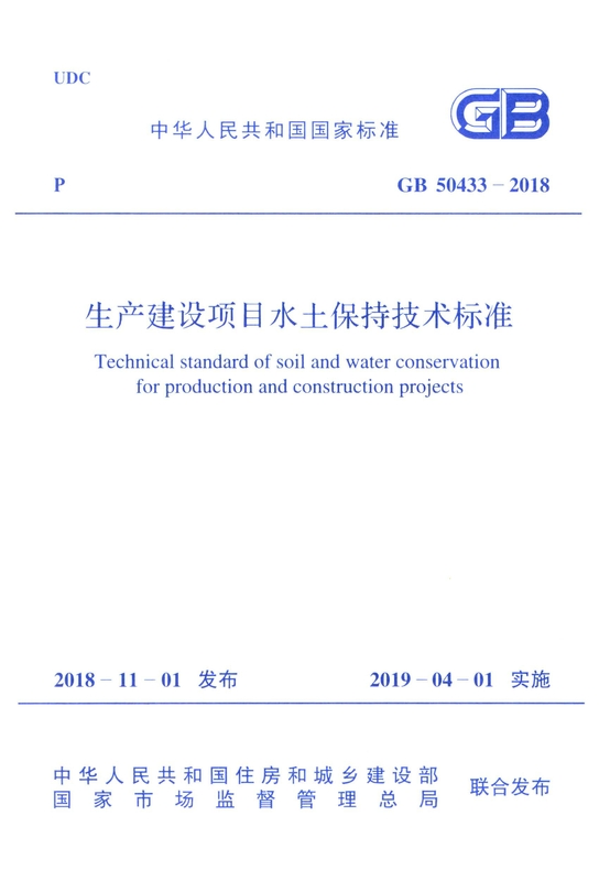 现批准《生产建设项目水土保持技术标准》为国家标准,编号为GB 50433—2018,自2019年4月1日起实施。其中,第3.2.3、3.2.5条为强制性条文,必须严格执行。原《开发建设项目水土保持技术规范》GB 50433—2008同时废止。